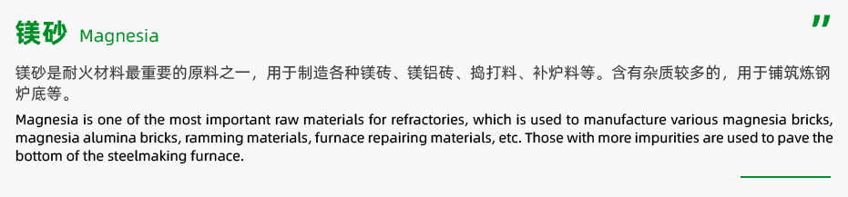 中档镁砂是以MgO含量为92-94%的轻烧氧化镁为原料,经压球、高温竖窑...